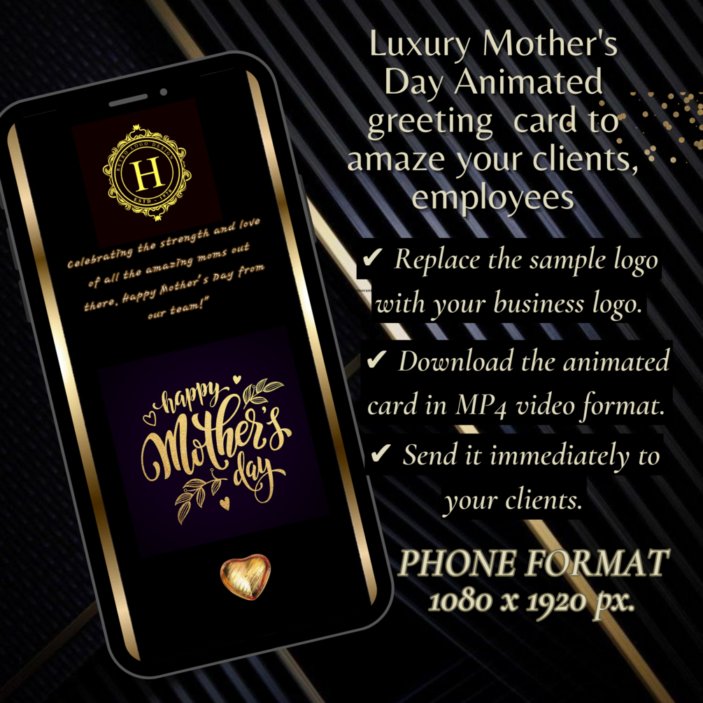 Instant Download, Card for Business, Greeting Mothers Day Card, Luxury Card to Send, Send to Costumers, 1080 x 1920 px Phone Size, Animate Greeting Card